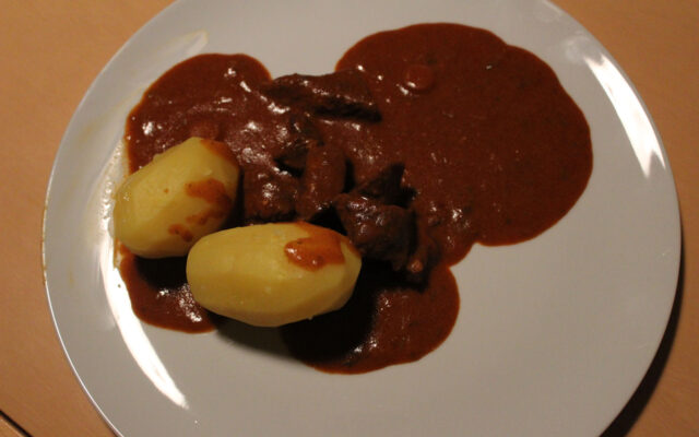 Ein gutes Gulasch fängt beim Fleisch an. Es gibt manche Menschen, die gerne Fett und Flachsen im Gulasch mögen. Viele mögen das nicht. Ein gutes, mageres Schnitzelfleisch ist das Beste. Und Gulasch…